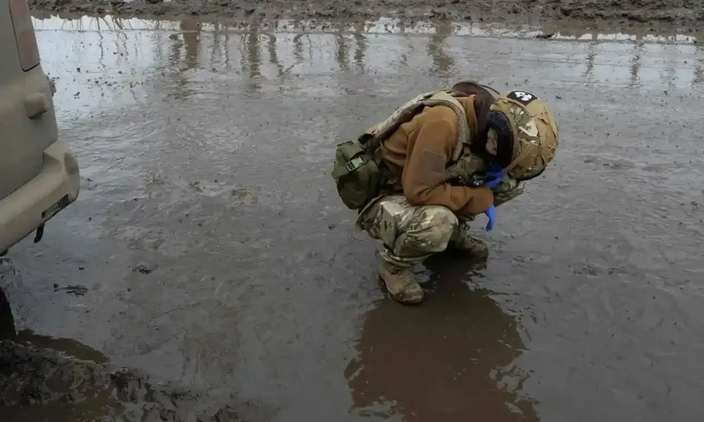 Alors que les travailleurs d’urgence emportent des restes dans un sac en corps blanc, Olena Kazabekhov regarde, pris entre espoir et peur. Elle est venue à la recherche de son père, Petro Vasylchyshyn, qui a servi avec le 95e bataillon aéroporté d’Ukraine. La jeune femme est larmoyante, appuyée sur son mari Yurii pour le soutien.